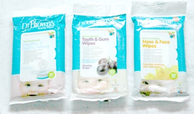 There are three unique specialty wipes designed by Dr Brown’s. Tooth and Gum Wipes: grape flavored, safe to swallow and designed to help develop good dental care, Pacifier Bottle Wipes: non-toxic, perfect for cleaning dropped bottles and pacifiers on the go, and finally the Nose and Face Wipes: cleans babies sticky messy face without any harsh irritants or alcohol. To see the full review GO HERE